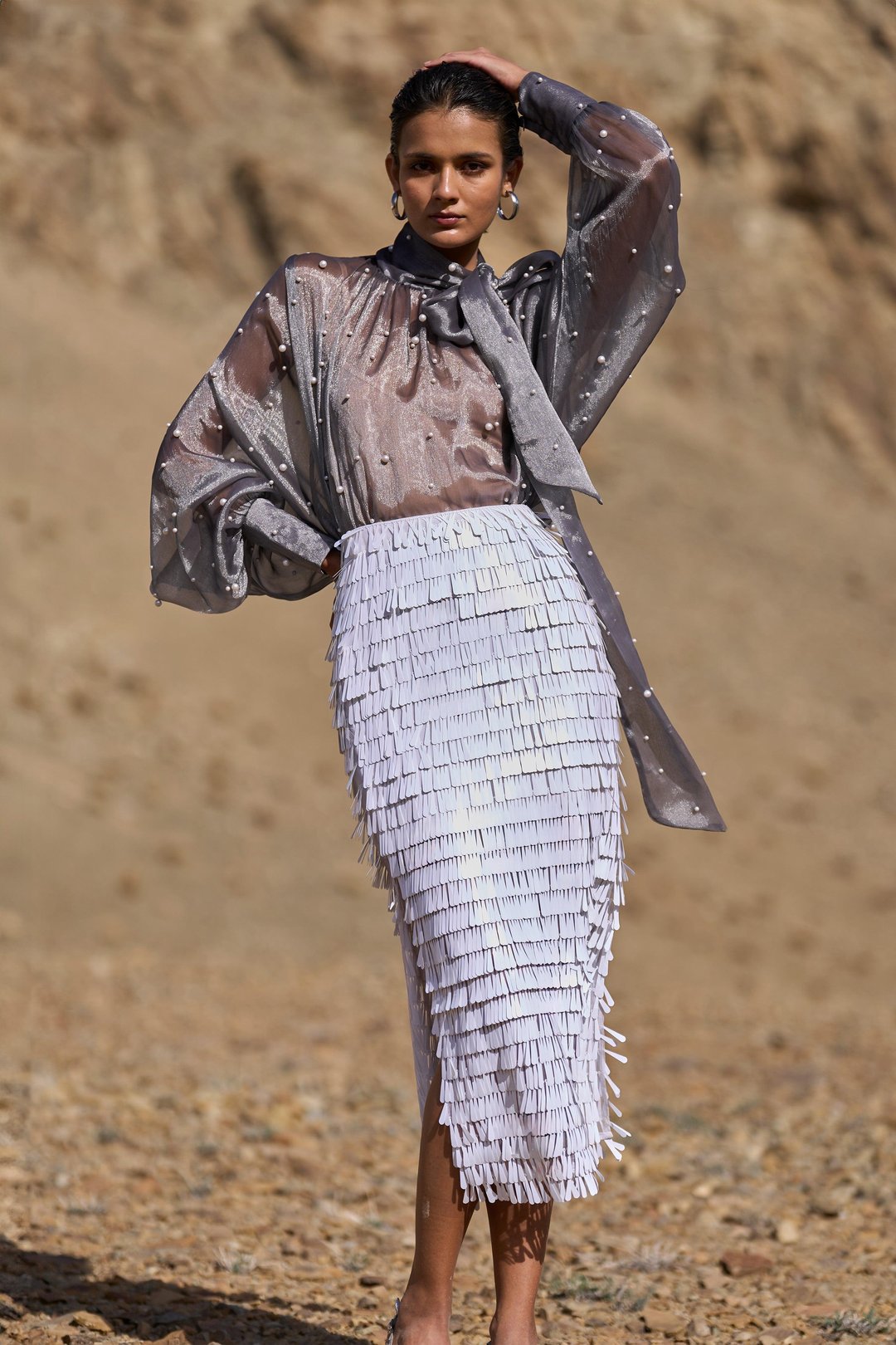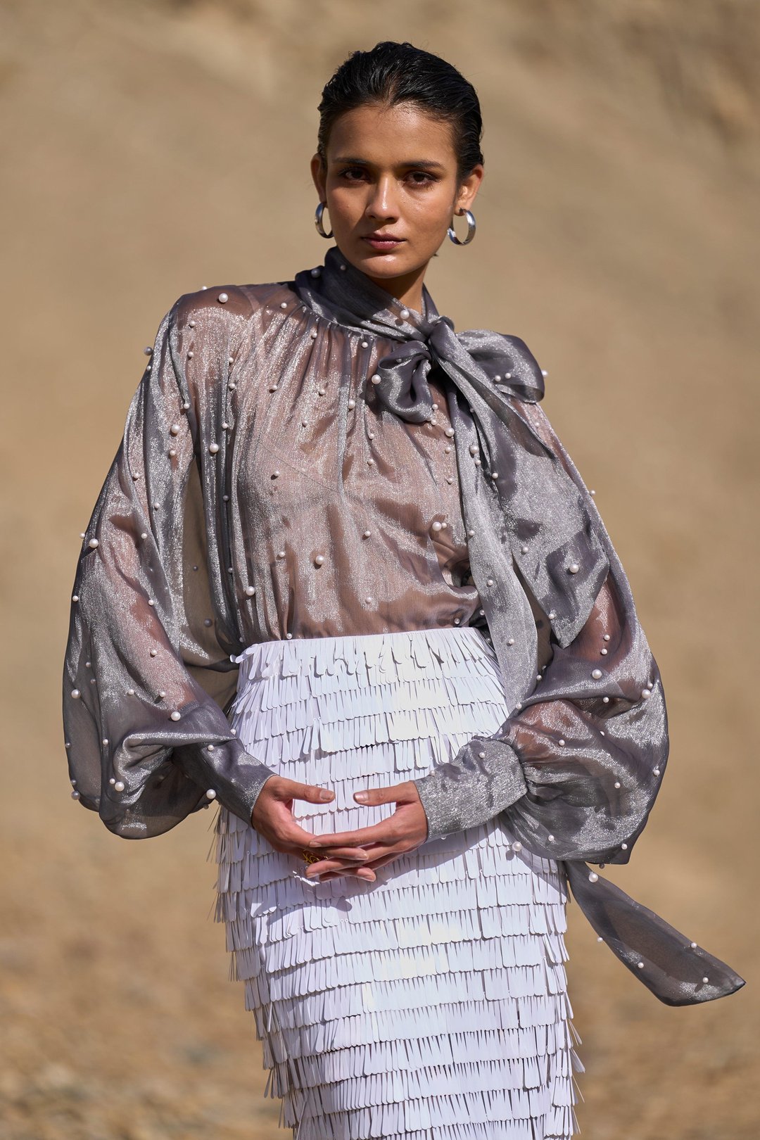Pearl Embroidered Lam� Blouse